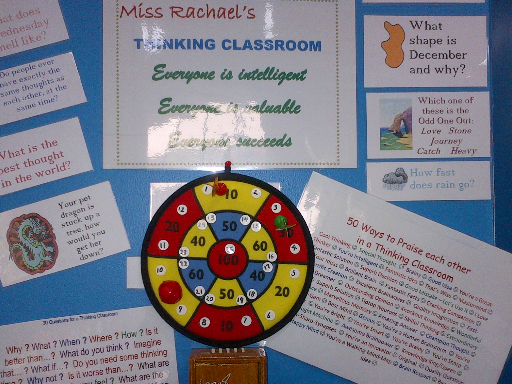 Walking through Carrefour I spotted a Velcro dart boad, so armed with that and a Reflection mat I adapted off Danielle, a colleague in English, I designed the ‘Reflection Bullseye’.