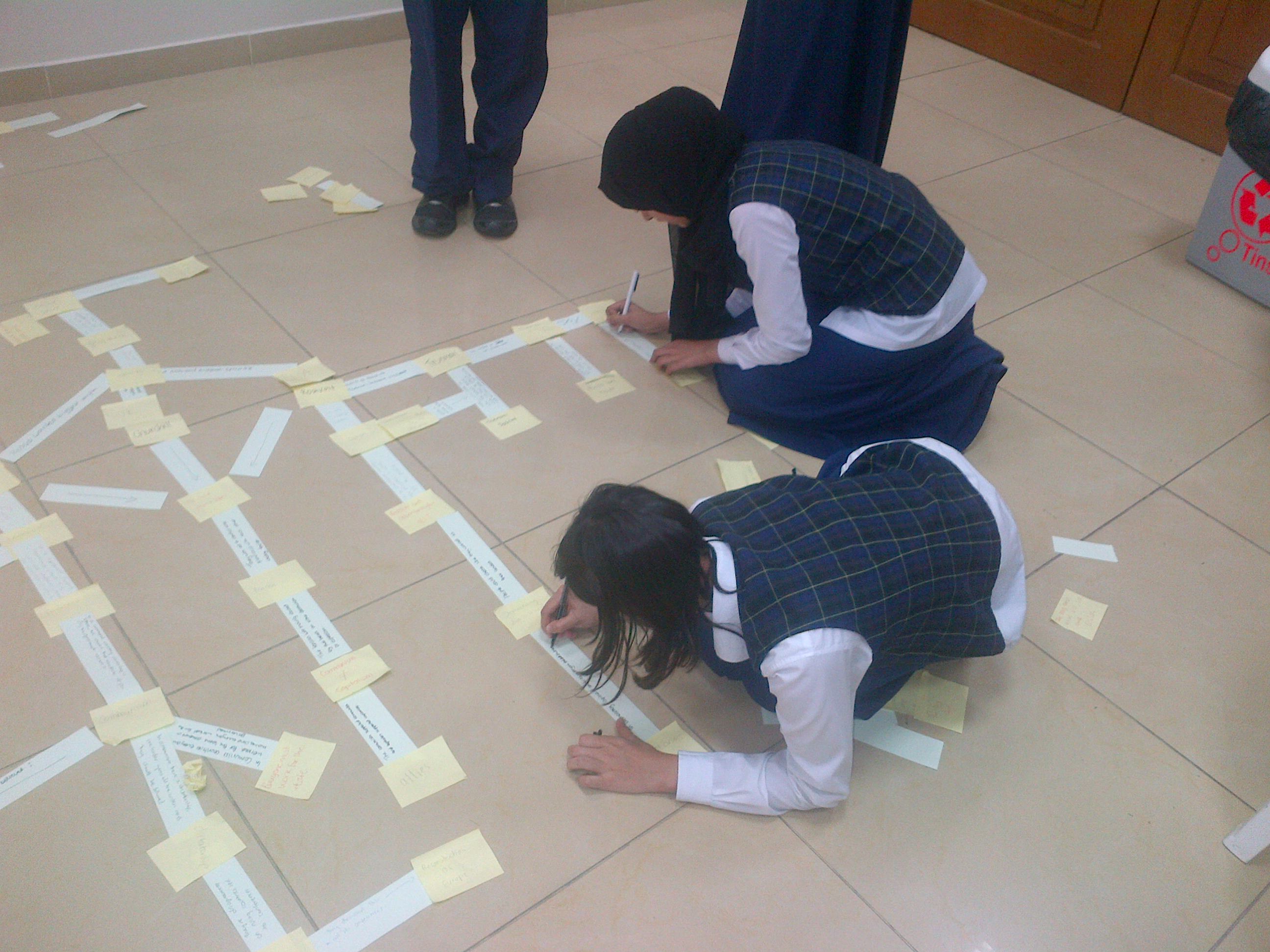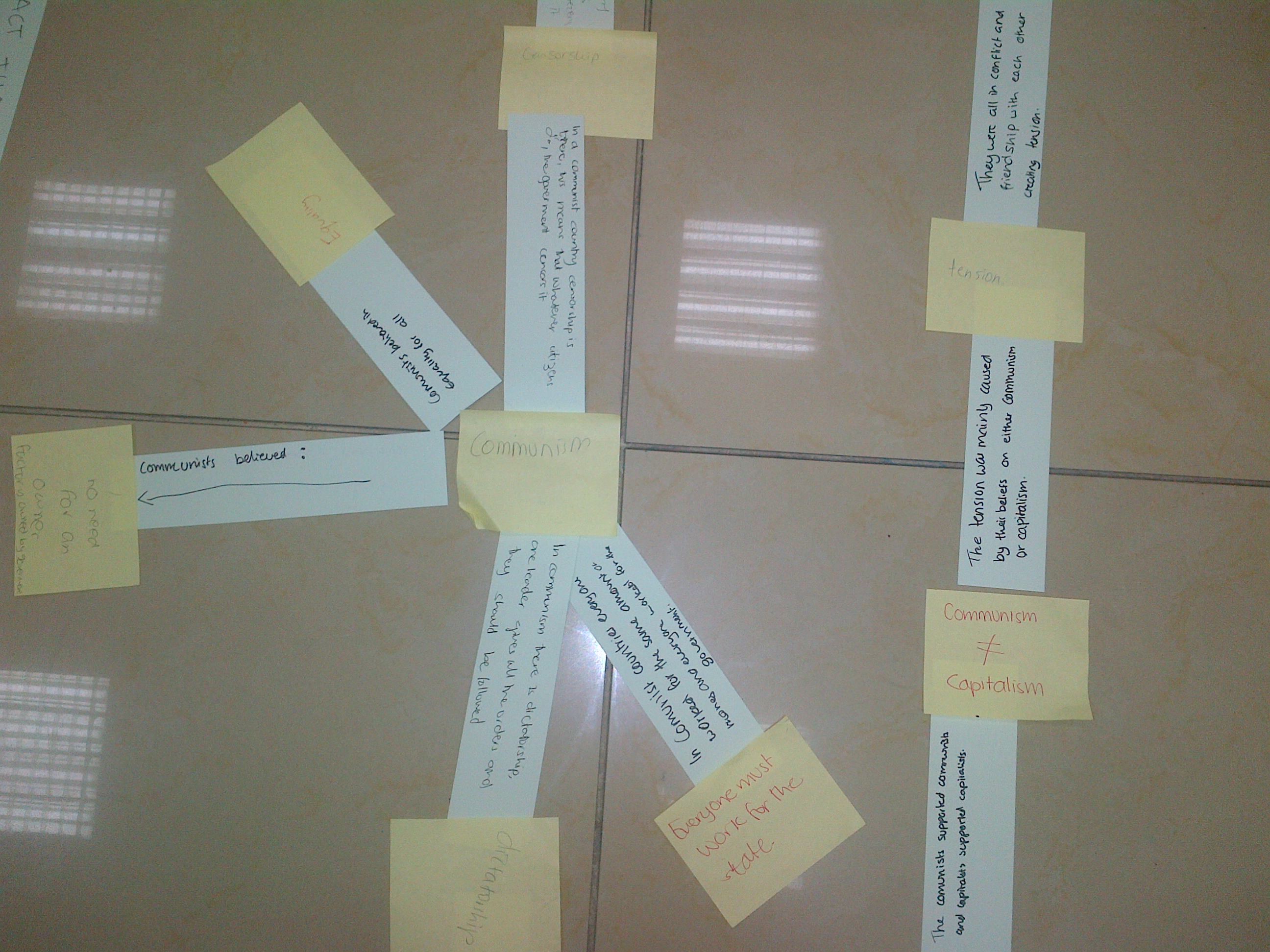 The task was for students to write on as many post it notes as they could a keyword, phrase, person, event, quote from everything we had studied on the Cold War so far. They then had to use the strips of card to link what was on the post it notes together. When they had made a link they then needed to explain by writing on the card, how these different concepts were connected.